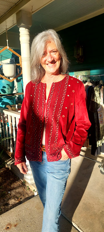 Denise in Myra red jacket