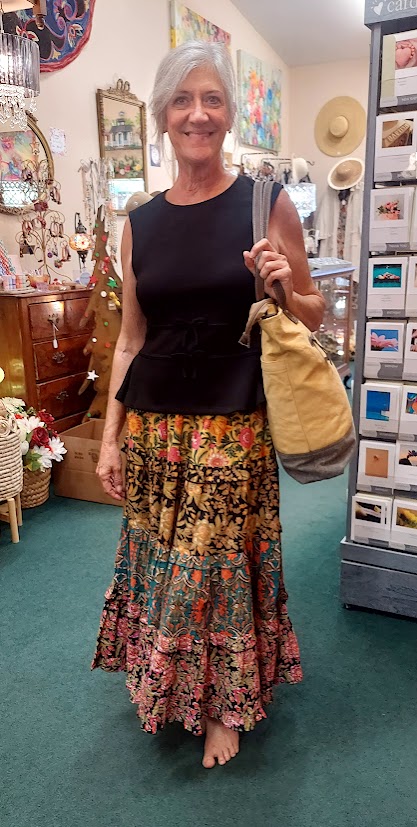 denise Myra multi sk, blk top mustard bag