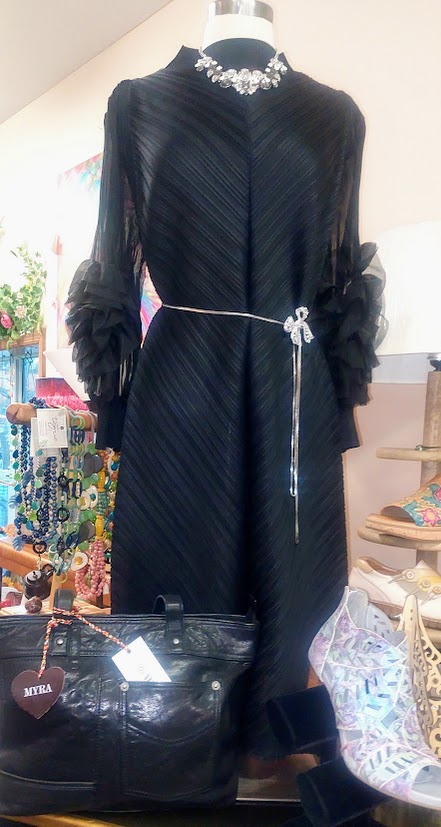 manican blk dress w ruffle sleeves